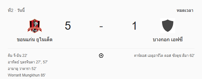 • หมดเวลา: ขอนแก่น ยูไนเต็ด 5-1 บางกอก เอฟซี