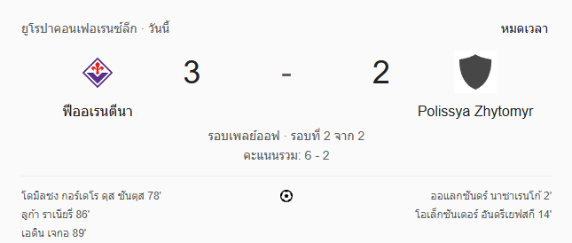- จบเกม: ฟิออเรนติน่า 3-2 Polissya Zhytomyr