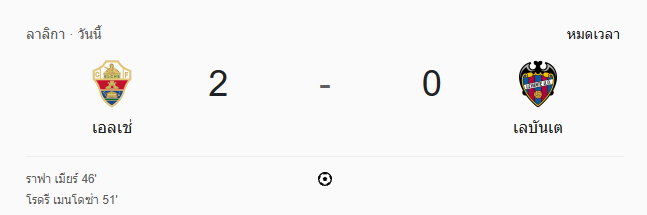 - หมดเวลาการแข่งขัน: เอลเช่ 2-0 เลบันเต้ เอลเช่คว้าชัยแบบไม่เสียประตู คว้าคลีนชีตสำคัญในบ้านได้อย่างยอดเยี่ยม!