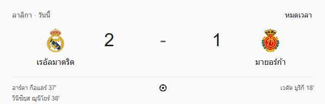 - จบครึ่งแรก: เรอัล มาดริด 2-1 มายอร์ก้า