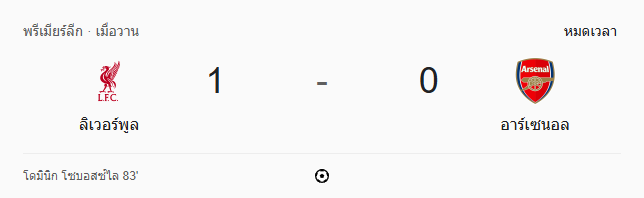 • หมดเวลา: ลิเวอร์พูล 1-0 อาร์เซนอล ประตูสุดสวยจากฟรีคิกของ โซบอสซ์ไล กลายเป็นลูกตัดสินพาหงส์แดงคว้าชัยสุดมันที่แอนฟิลด์