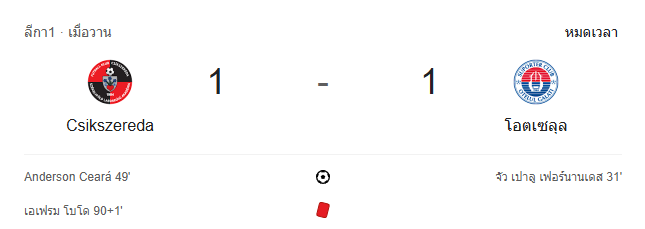 - นาทีที่ 49: ⚽ GOAL! Csikszereda ตีเสมอ 1-1 จากจังหวะที่ เซอาร่า ยิงไกลด้วยซ้าย บอลพุ่งเสียบใต้คานอย่างงดงาม