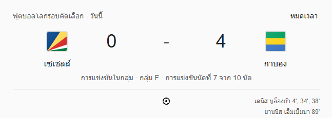 หมดเวลาการแข่งขัน: เซเชลส์ 0-4 กาบอง