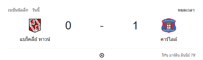 - นาทีที่ 90+7: จบเกม! คาร์ไลล์ ยูไนเต็ด บุกมาเฉือนชนะ แบร็คคลีย์ ทาวน์ 0-1 คว้า 3 แต้มสำคัญจากเกมที่เต็มไปด้วยจังหวะดุดัน