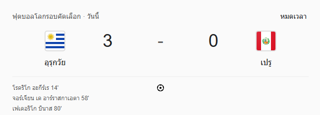 รายงานการแข่งขัน: อุรุกวัย 3-0 เปรู