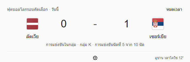• นาทีที่ 94: หมดเวลาการแข่งขัน! เซอร์เบียบุกมาคว้า 3 แต้มสำคัญได้สำเร็จ