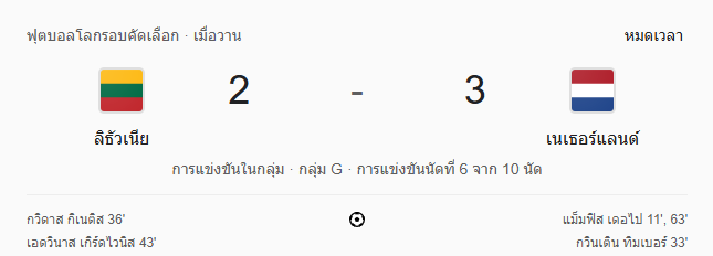 ผลบอลสด ฟุตบอลโลก 2026 รอบคัดเลือก โซนยุโรป กลุ่ม G ระหว่าง ลิธัวเนีย 2-3 เนเธอร์แลนด์ วันนี้ 7/9/68