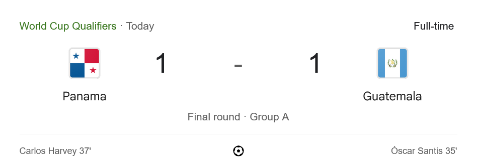 จาก : ผลบอลสด ฟุตบอลโลก 2026 รอบคัดเลือก โซนอเมริกาเหนือ กลุ่ม A ระหว่าง ปานามา 1-1 กัวเตมาลา วันนี้ 9/9/68 – บ้านกีฬา
