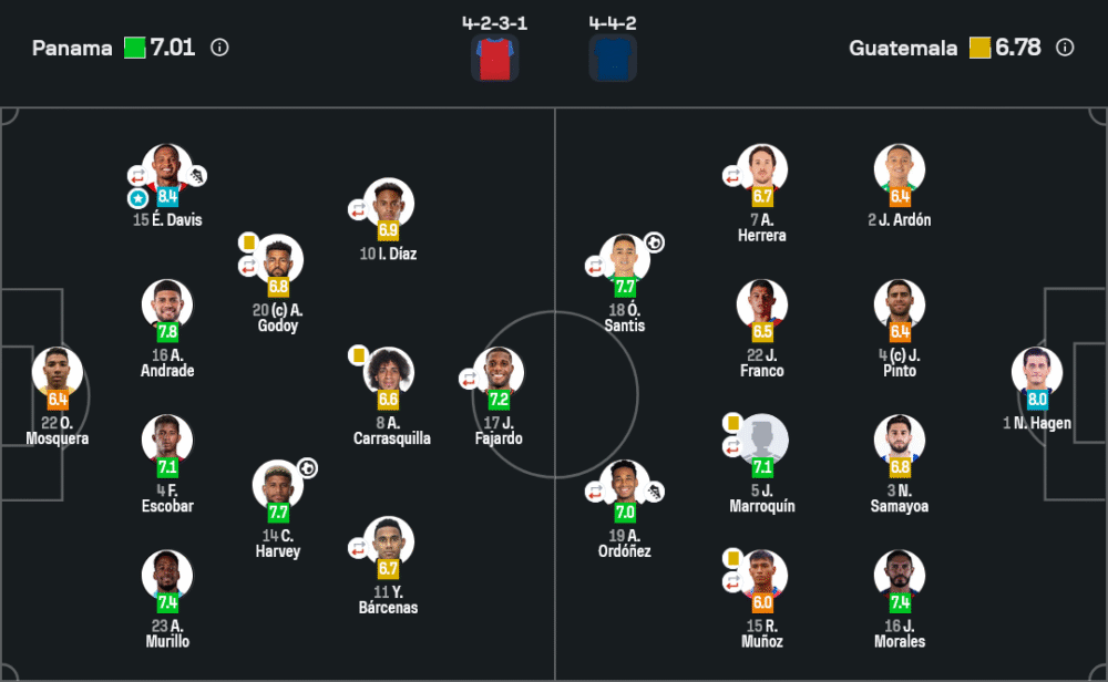 เอริค เดวิส ฟูลแบ็กของปานามาคือหัวใจสำคัญในเกมนี้ วิ่งขึ้นลงไม่หยุด สร้างสรรค์เกมบุก เปิดบอลแม่นยำ และยังเป็นคนจ่ายให้ทีมตีเสมอ ได้คะแนนสูงสุด 8.4 จาก Sofascore ยืนยันผลงานยอดเยี่ยม