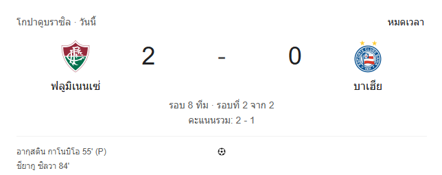 ผลบอลสด โคปา โด บราซิล ระหว่าง ฟลูมิเนนเซ่ vs บาเฮีย วันนี้ 11/9/68 ดูบอลย้อนหลัง คลิปไฮไลท์ ดูบอล โคปา โด บราซิล