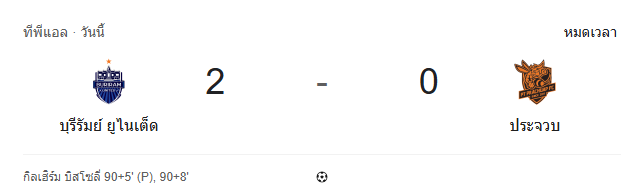 - หมดเวลา: บุรีรัมย์ ยูไนเต็ด 2-0 ประจวบ เอฟซี