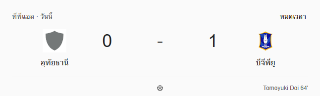 นี่คือเกมที่เรียกได้ว่า “เอาชนะด้วยสมองและระเบียบ” ของฝั่งทีมเยือน บีจี ปทุม ยูไนเต็ด ที่แม้จะมีโอกาสน้อยกว่า แต่เปลี่ยนเป็นประตูได้จากลูกยิงสุดสวยของ โทโมยูกิ โดอิ และที่สำคัญคือความแน่นหนาของเกมรับโดยมี ซารานอน อนอยิน เซฟจังหวะอันตรายได้หลายครั้ง ส่วนทางฝั่ง อุทัยธานี เอฟซี แม้จะสู้เต็มที่ และมีจังหวะน่าลุ้นมากมายแต่พลาดกันเองในจังหวะสุดท้าย แถมยังโดน VAR ริบประตูไปอีกด้วย