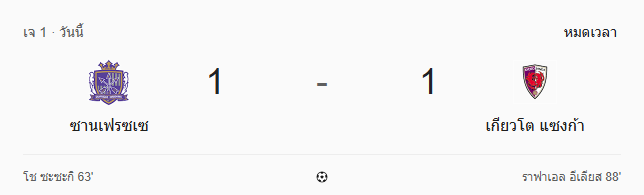 - จบเกม: ซานเฟรซเซ ฮิโรชิมา 1-1 เกียวโต แซงก้า