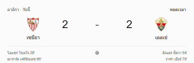- หมดเวลา: เซบีญ่า 2-2 เอลเช่