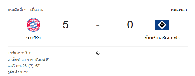 - จบครึ่งแรก: บาเยิร์น 4-0 ฮัมบูร์ก
