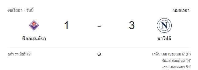 - จบครึ่งแรก: ฟิออเรนตินา 0-2 นาโปลี