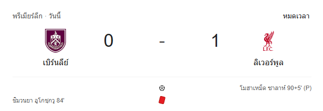 - นาทีที่ 97: จบเกม เบิร์นลีย์ 0-1 ลิเวอร์พูล