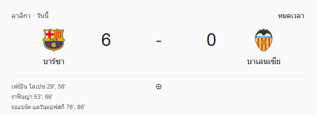 - หมดเวลา: บาร์เซโลนา 6-0 บาเลนเซีย