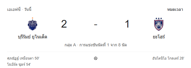 สองประตูในช่วงต้นครึ่งหลังจาก ศุภณัฏฐ์ เหมือนตา และ โรเบิร์ต ซูจิ คือจุดเปลี่ยนที่ทำให้ บุรีรัมย์ ยูไนเต็ด เก็บชัยได้สำเร็จ ด้าน ยะโฮร์ แม้บุกหนักช่วงท้าย แต่จังหวะสุดท้ายยังไม่เฉียบพอ