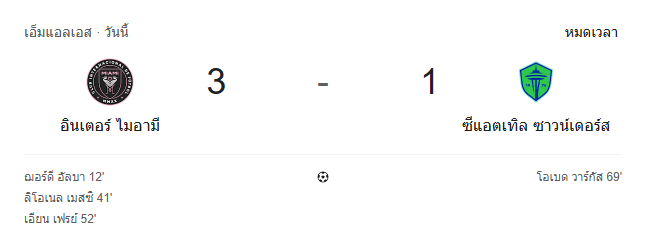 - จบครึ่งแรก: อินเตอร์ ไมอามี 2-0 ซีแอตเทิล