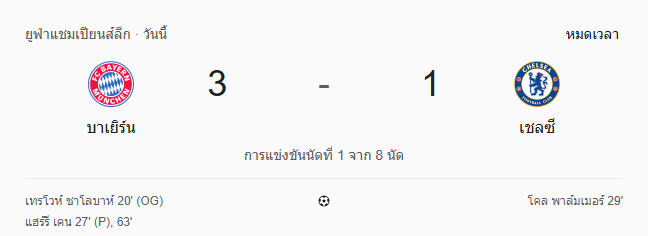 ผลบอลสด ยูฟ่าแชมเปี้ยนส์ลีก ระหว่าง บาเยิร์น มิวนิค vs เชลซี วันนี้ 18/9/68 ดูบอลย้อนหลัง คลิปไฮไลท์ ดูบอล ยูฟ่าแชมเปี้ยนส์ลีก