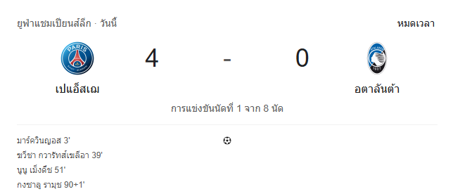 - นาทีที่ 94: จบเกม! PSG ถล่มอตาลันต้า 4-0