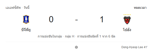 - นาทีที่ 41: ⚽️ GOAL! โปฮังนำ 0-1