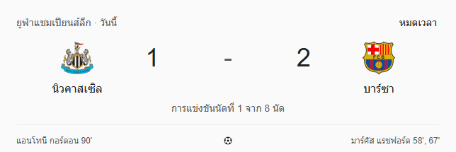 - จบครึ่งแรก: นิวคาสเซิล 0-0 บาร์เซโลนา