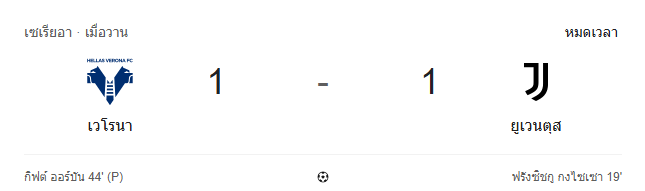 - จบเกม: เวโรนาเปิดบ้านยันเสมอ ยูเวนตุส 1-1 แบ่งแต้มสำเร็จ!