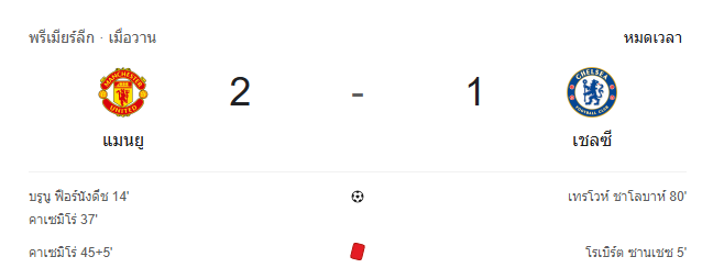• จบเกม: แมนเชสเตอร์ ยูไนเต็ด 2-1 เชลซี