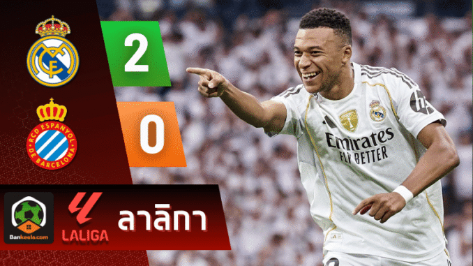 ศึก ลาลีกา สเปน คืนที่ผ่านมา แฟนบอลได้ลุ้นกันสุดมันส์เมื่อ เรอัล มาดริด เปิดซานติอาโก้ เบร์นาเบว ต้อนรับ เอสปันญ่อล ก่อนจัดการปิดบัญชีด้วยสกอร์ 2-0 จากลูกยิงของ เอแดร์ มิลิเตา และ คีลิยัน เอ็มบัปเป้ บ้านกีฬา ขอบอกเลยว่าเกมนี้ราชันชุดขาวโชว์คลาสเหนือชั้น ครองบอลสร้างโอกาสได้ตลอดทั้งเกม พร้อมคว้า 3 คะแนนเต็ม เสริมสถิติ ผลบอลสด ไร้พ่าย 5 นัดติด