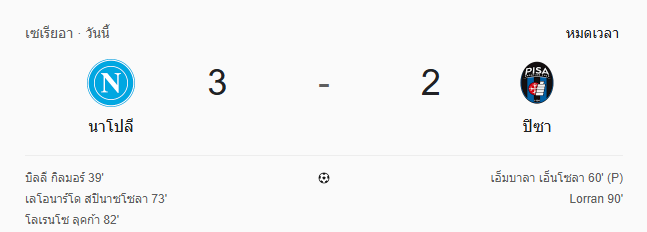 ผลบอลสด เซเรียอา ระหว่าง นาโปลี vs ปิซ่า วันนี้ 23/9/68 ดูบอลย้อนหลัง คลิปไฮไลท์ ดูบอล เซเรียอา