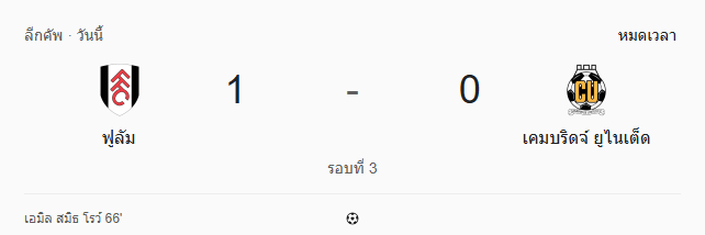 • นาทีที่ 96: จบเกม! ฟูแล่มเฉือนชนะ 1-0 ผ่านเข้ารอบ 4 ได้สำเร็จ