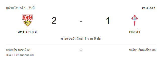 - จบเกม: สตุ๊ตการ์ตเปิดบ้านเฉือนเซลต้า บีโก้ 2-1 ประเดิมเก็บสามแต้มในรอบแบ่งกลุ่มได้สำเร็จ!