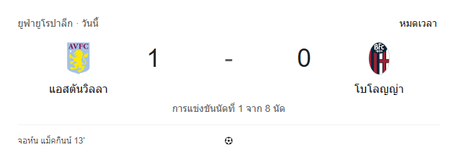 ผลบอลสด ยูฟ่ายูโรปาลีก ระหว่าง แอสตัน วิลล่า 1-0 โบโลญญ่า วันนี้ 26/9/68