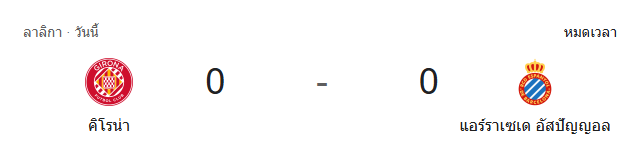 - จบเกม: คิโรน่า 0-0 เอสปันญอล จบลงแบบไร้สกอร์ แต่แลกกันสนุกตลอด 90 นาที