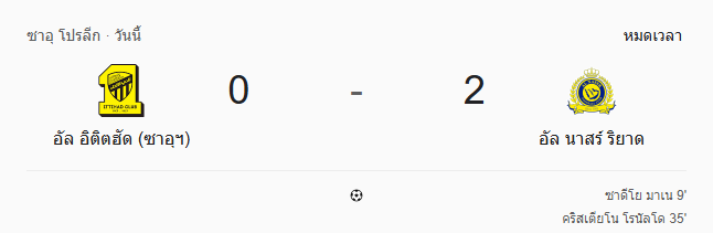 • จบเกม: อัล นาสร์ บุกชนะ อัล อิตติฮัด 2-0