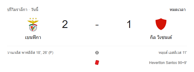 รายงานการแข่งขัน: เบนฟิก้า 2-1 กิล วิเซนต์