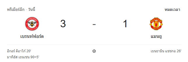 คำรามดังกลางลอนดอน! เบรนท์ฟอร์ด ถล่ม แมนยูฯ 3-1 ผลบอลสด พรีเมียร์ลีก
