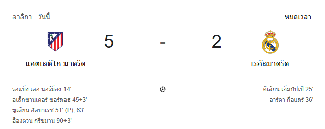 รายงานการแข่งขัน: แอตเลติโก มาดริด 5-2 เรอัล มาดริด