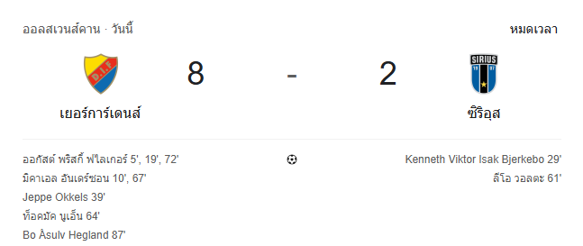 โหดจัด! เยอร์การ์เด้น ถล่มเละ 8-2 ซิริอุส ศึกออลสเวนส์คาน สวีเดน