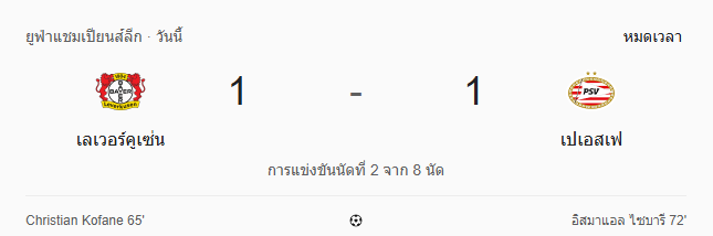 • จบครึ่งแรก: เลเวอร์คูเซ่น 0 – 0 พีเอสวี