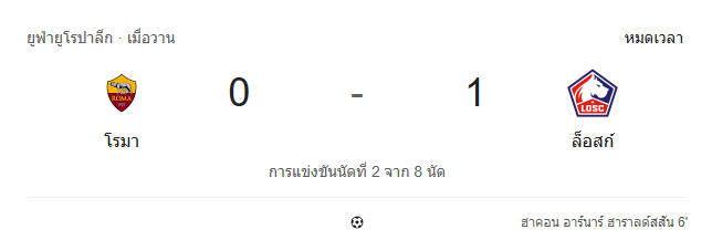 • จบครึ่งแรก: โรม่า 0 – 1 ลีลล์