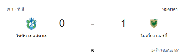 • นาทีที่ 55: ⚽️ GOAL! โตเกียว เวอร์ดี้ขึ้นนำ 0-1