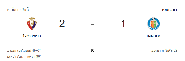 ผลบอลสด ลาลิกา ระหว่าง โอซาซูน่า vs เกตาเฟ่ วันนี้ 4/10/68 ดูบอลย้อนหลัง คลิปไฮไลท์ ดูบอล ลาลิกา