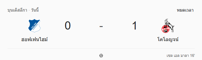 - หมดเวลา: โคโลญจน์ บุกเฉือน ฮอฟเฟ่นไฮม์ 0-1 เก็บสามแต้มล้ำค่าได้สำเร็จ