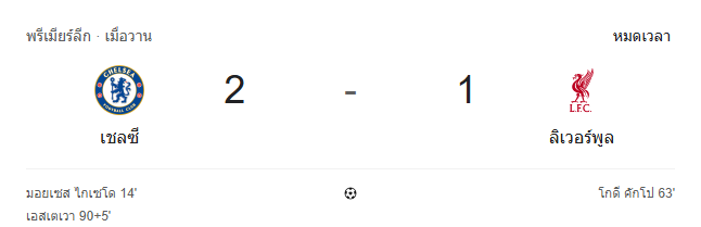 รายงานการแข่งขัน: เชลซี 2 – 1 ลิเวอร์พูล