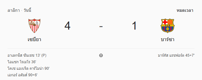 รายงานการแข่งขัน: เซบีย่า 4-1 บาร์เซโลน่า