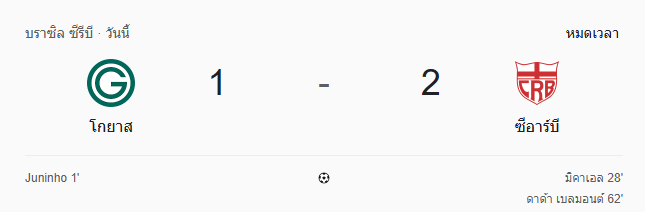 ผลบอลสด คัมปิโอนาโต บราซิเลียโร ซีรีบี ระหว่าง โกยาส 1-2 ซีอาร์บี แม็คซิโอ วันนี้ 8/10/68