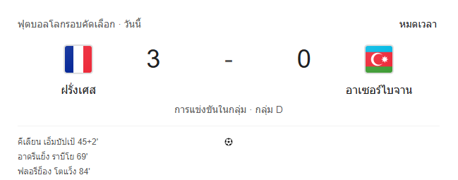 • หมดเวลา: ฝรั่งเศส 3–0 อาเซอร์ไบจาน
